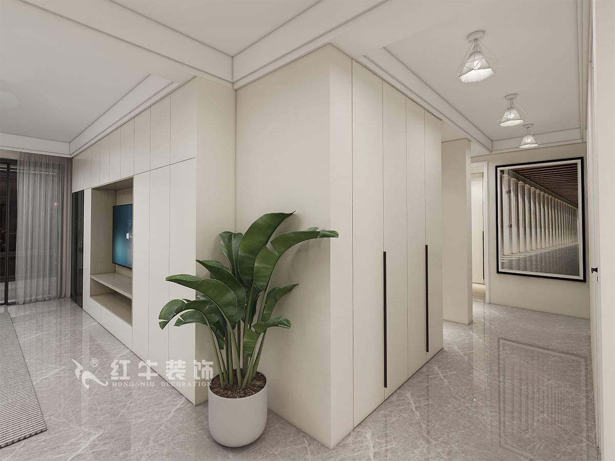一家三口居住,女業(yè)主對裝修希望比較簡單大氣,希望未來的房子簡潔、實用、大氣,最終確定了現(xiàn)代風(fēng)。而本案在設(shè)計時其特色是將設(shè)計的元素、色彩、照明、原材料簡化到最少程度,但是對材料的舒適度要求很高。因此,現(xiàn)代的空間設(shè)計非常含蓄,往往能起到以少勝多、以簡勝繁的效果。藝術(shù)創(chuàng)意宜簡不宜繁,宜藏不宜顯。