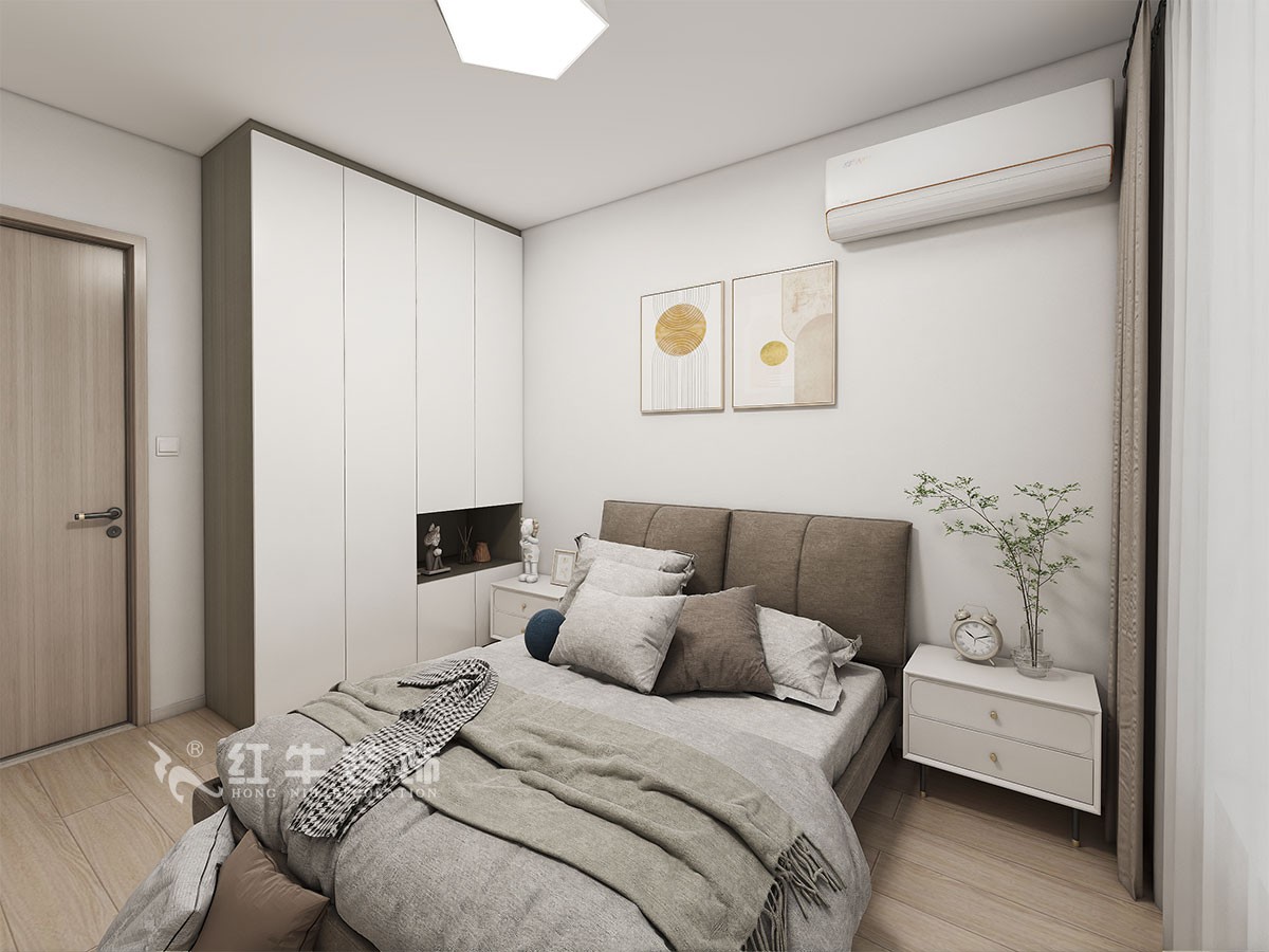 本案設(shè)計整體結(jié)構(gòu)不做太大改變,進門增加玄關(guān),和鞋柜形成一體。過道拉直,主臥室門內(nèi)縮,正好也符合客戶的需求。主衛(wèi)擴大,里面放一個洗衣機的位置。整體風(fēng)格是現(xiàn)代簡約風(fēng)格,暖咖色的墻面乳膠漆的色彩,看起來溫馨簡約。搭配原木色的定制家具,更貼近自然生活。