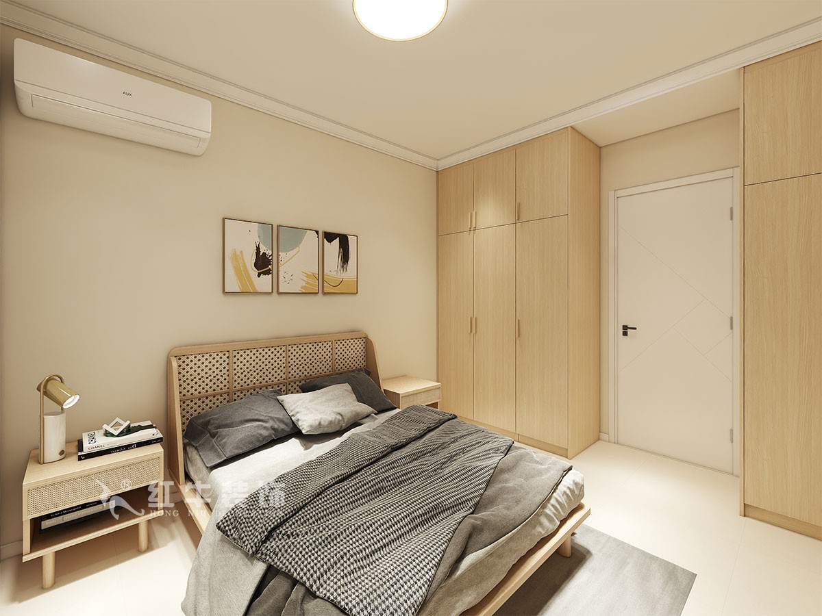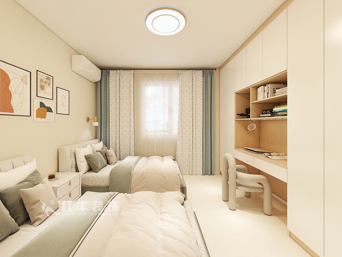 本案客戶一家三代人,大體結(jié)構(gòu)不需要做過多改動,房間門洞移位,增加鞋柜空間。由于要跟小孩居住,次臥放置兩個獨立的床,床尾分開的衣柜保持收納獨立性。中間較大的桌子,滿足梳妝及小孩學(xué)習(xí)。洗衣機放置陽臺,增加便捷性。