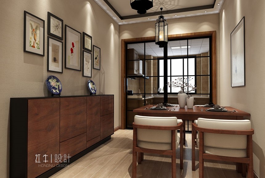 此案設(shè)計(jì)采用了中式風(fēng)格為主,為使得整個(gè)空間更豐富增加了其他元素在里面。