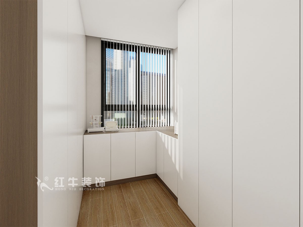 2、和主臥相鄰的臥室做成了衣帽間,增加了主臥室的儲藏功能。