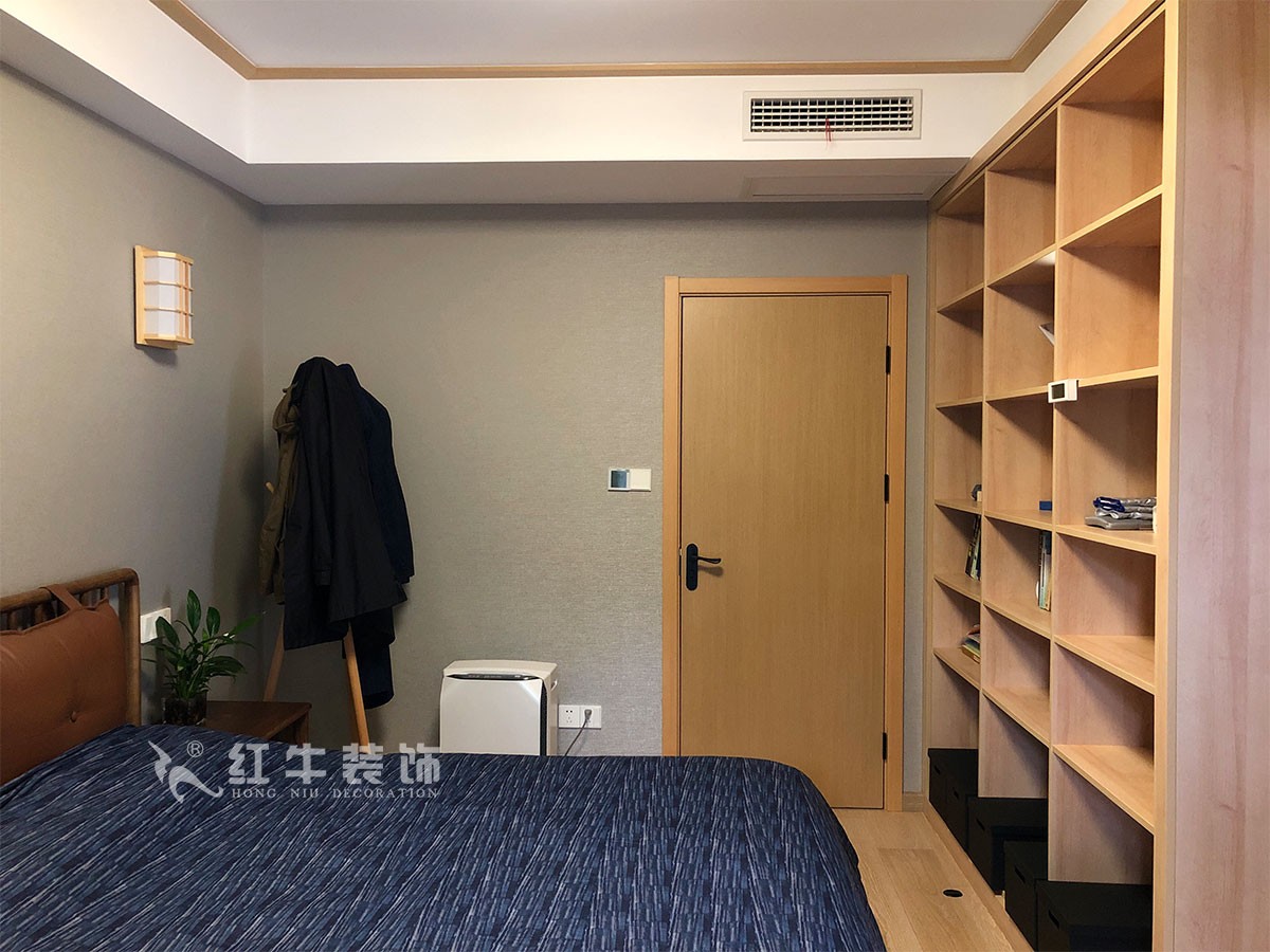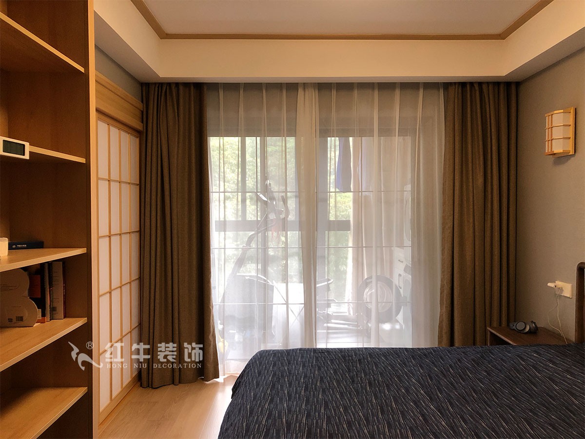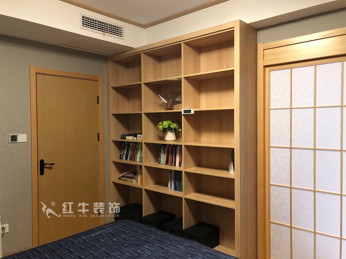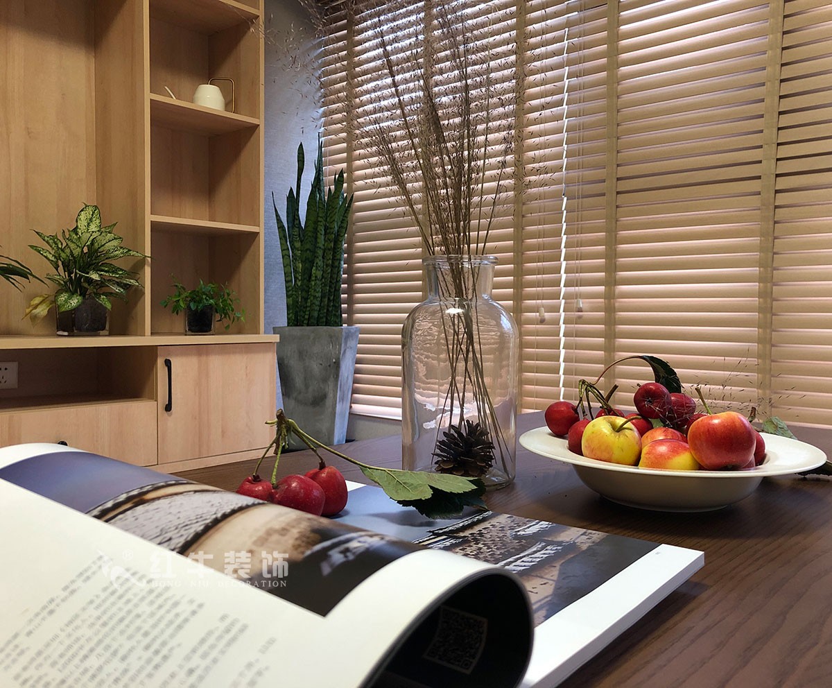 客餐廳色調(diào)清雅,休閑、隨性,又不失精致。電視背景墻依靠大面積開放柜拓展儲(chǔ)物及裝飾功能,給居住者一個(gè)慵懶、明快的起居環(huán)境。臥室,依靠木質(zhì)家具本身的線條感,搭配同樣風(fēng)格的日式壁燈,給人以休閑自在的視覺感受。書房是辦公空間,整面墻全部以臥室同色的麻灰色墻布鋪貼,書桌旁轉(zhuǎn)角的飄窗給了原本不大的空間一個(gè)視覺的開放性,心情也自然就舒緩很多。