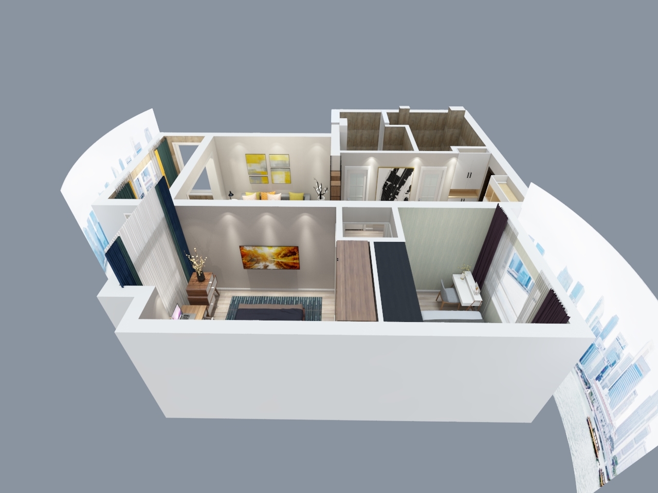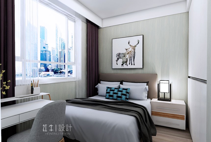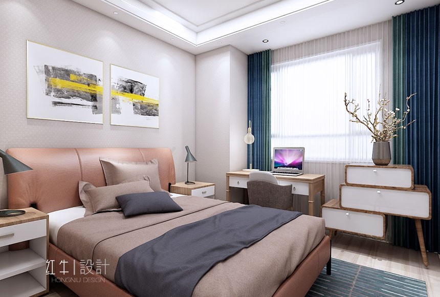現(xiàn)代人的生活習(xí)性,喜歡簡(jiǎn)單明了不拖泥帶水的東西,都市的快節(jié)奏,讓人們希望在房子里找到家的溫馨??蛷d淺灰色的墻面讓人有安靜下來的體驗(yàn),木色的家具,加以搭配撞色的門板,不會(huì)有原始的呆板。木色的家具配以時(shí)尚的撞色,大膽又不失規(guī)矩,甚是合適。大量的留白,使空間更加時(shí)尚和安靜。房間木色的拼色和皮質(zhì)的碰撞,配以稍深的墻紙,溫暖又清新,讓主人能在疲憊一天的工作中,舒服的進(jìn)入夢(mèng)鄉(xiāng)。次臥朝北,運(yùn)用淺綠色的墻面,將空間帶進(jìn)自然,