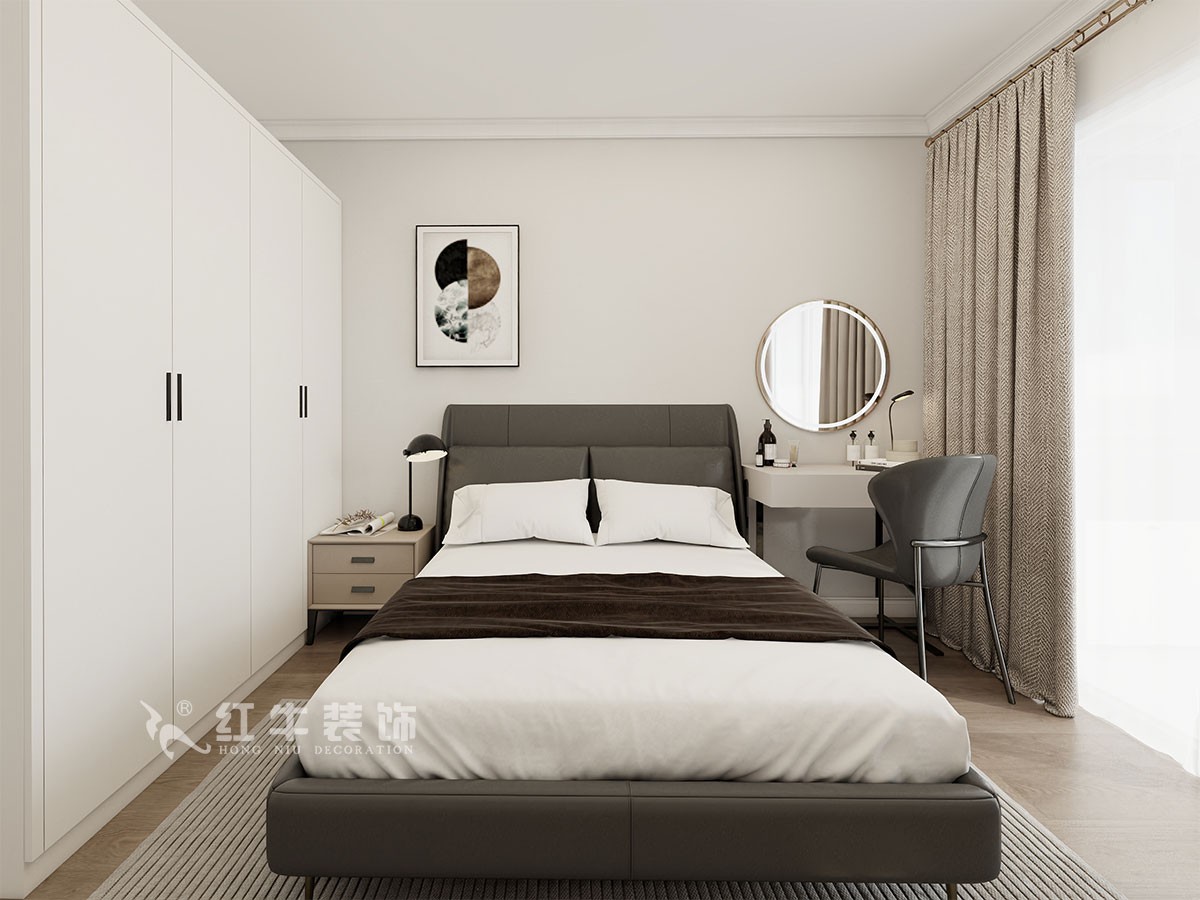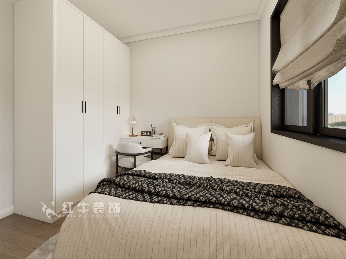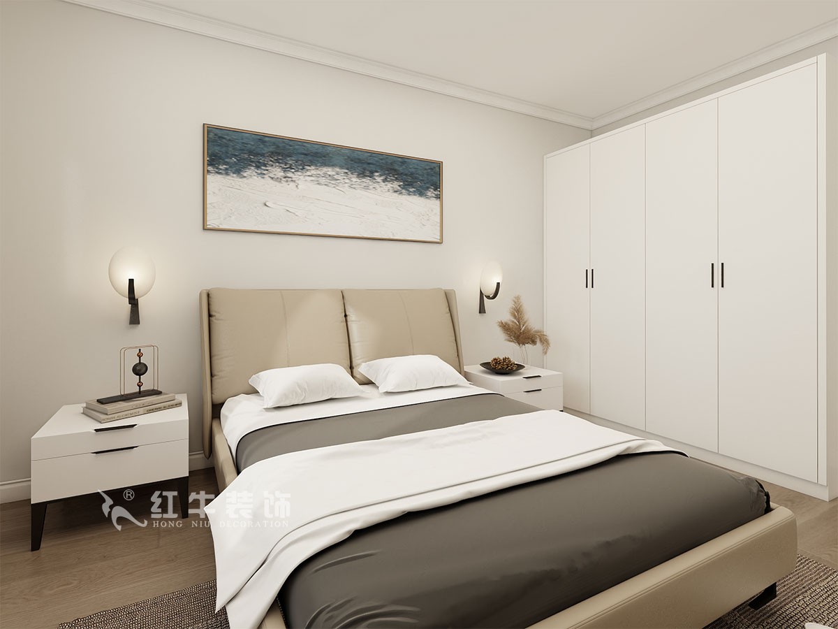 此案主要是婚房裝修,在舒適度上要求比較高,臥室是整套房子中最私人也是最體現(xiàn)出溫馨休閑感的空間,在設(shè)計(jì)時(shí)體現(xiàn)出靜謐舒適的感覺,并且與其他空間有明顯的區(qū)別。沙發(fā)在整個(gè)區(qū)域沒(méi)地方擺放,而是設(shè)計(jì)了吧臺(tái)充當(dāng)墻體,讓沙發(fā)有靠山,漂亮的吧臺(tái)是一個(gè)亮點(diǎn),又能起到分割空間的作用。廚房窗戶比較大,光線就能更好地進(jìn)到門廳,衛(wèi)生間也能單獨(dú)一個(gè)區(qū)域。