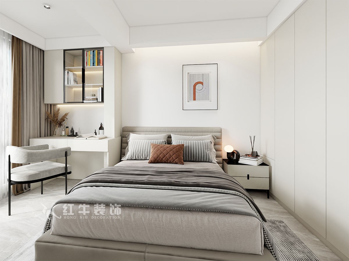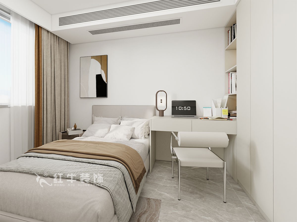 房型基本規(guī)整,廚房面積偏小,需要解決冰箱的擺放問(wèn)題。過(guò)道狹長(zhǎng),方案擴(kuò)大了廚房的空間,衛(wèi)生間做了干濕分離,使得北臥和書房面積擴(kuò)大,次臥也重新做了功能分區(qū),使得整體空間規(guī)劃更合理。