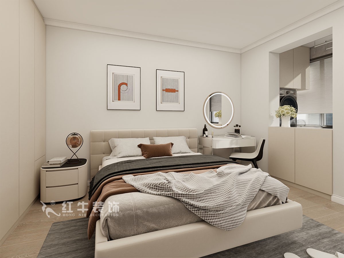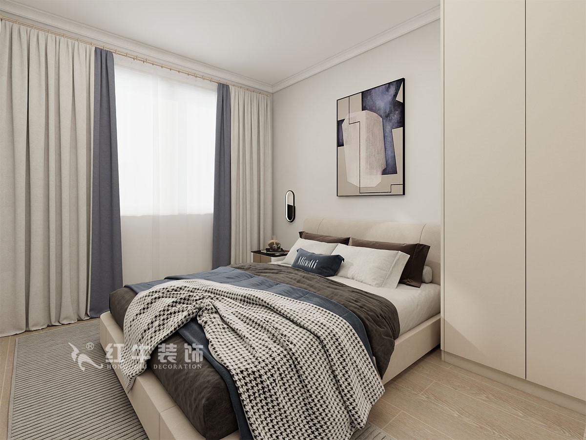 此案主要是婚房裝修,在舒適度上要求比較高,臥室是整套房子中最私人也是最體現(xiàn)出溫馨休閑感的空間,在設(shè)計(jì)時(shí)體現(xiàn)出靜謐舒適的感覺,并且與其他空間有明顯的區(qū)別。