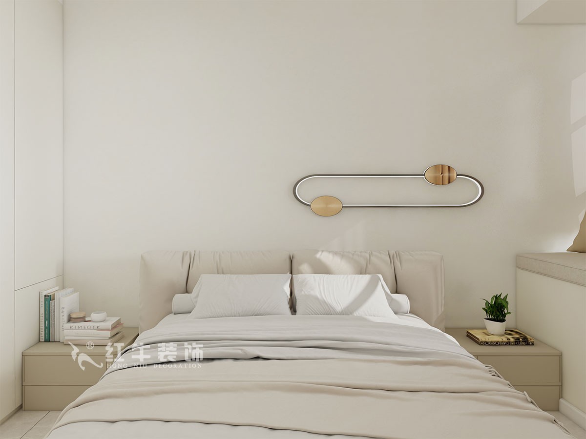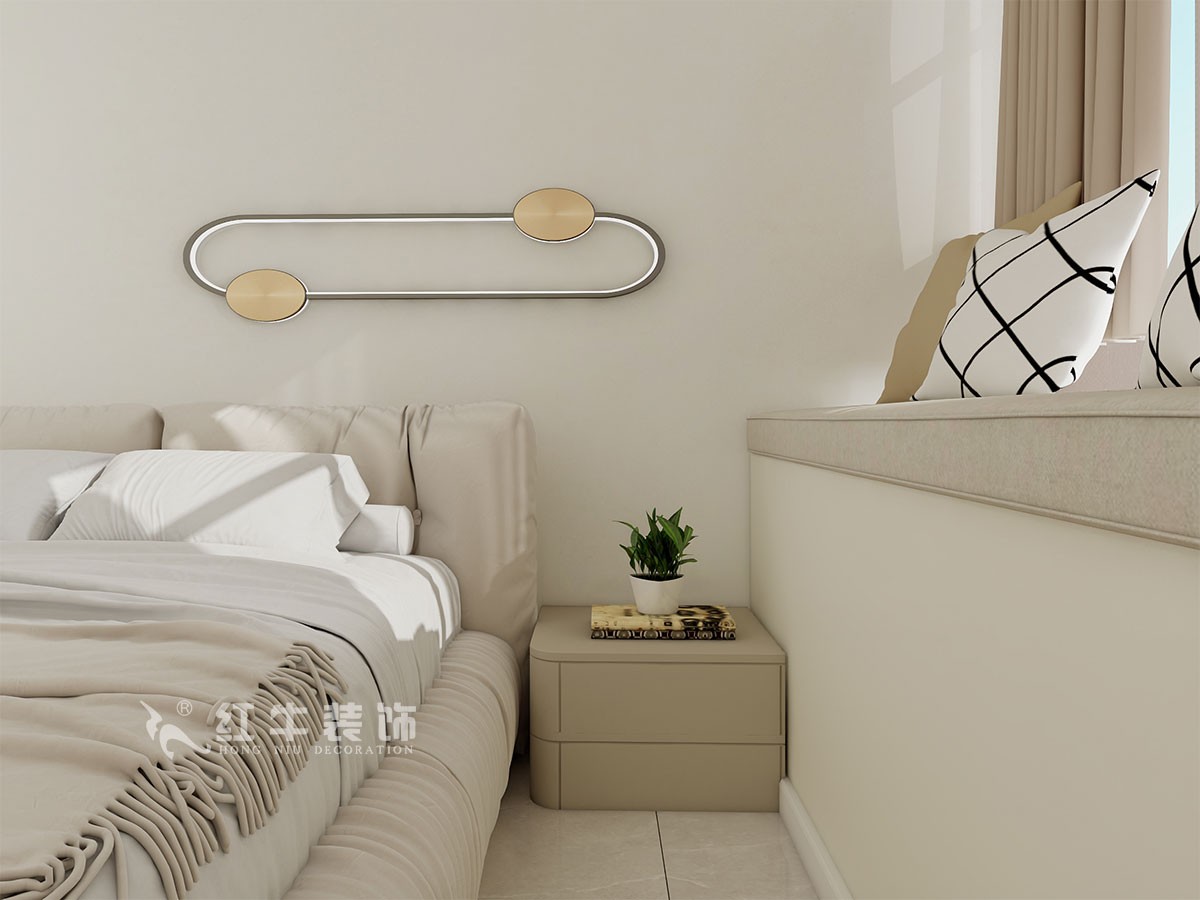 臥室說明:搭配大面積的白色定制衣柜,床頭的光源以不同形勢呈現(xiàn),既滿足不同燈光需求,又恰到好處地起到了裝飾效果,使整體臥室空間呈現(xiàn)明亮、溫柔的舒適狀態(tài)。