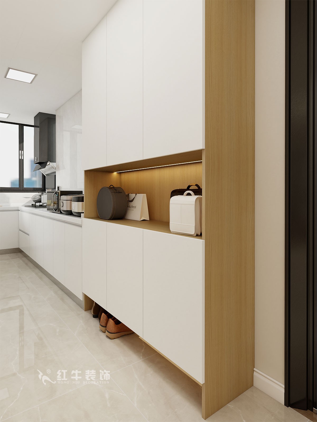 客戶是一家三口,原始戶型比較方正,沒(méi)有做大的改動(dòng),原始餐廳很小,經(jīng)過(guò)溝通,客戶表示不需要餐桌,平時(shí)吃飯就在沙發(fā)上已經(jīng)很習(xí)慣了。餐廳跟廚房合并后,廚房功能齊全,使用也很方便。整個(gè)裝修風(fēng)格簡(jiǎn)潔溫馨。