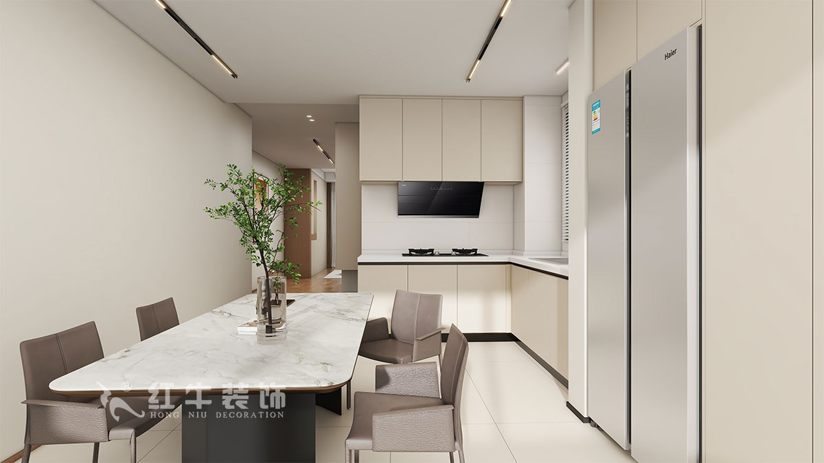 一家三口居住,主要考慮小孩上學(xué)住的,戶型不是很規(guī)整,過(guò)道狹長(zhǎng),進(jìn)門視覺(jué)擁堵。主臥和次臥空間大小進(jìn)行了重新規(guī)劃,原先的餐廳區(qū)域做了開(kāi)放式書(shū)房。廚房、北邊臥室、北陽(yáng)臺(tái)考慮光線不好,全部拆掉,連著廚房,做了廚房餐廳一體化的設(shè)計(jì),使整個(gè)空間利用率更高。不僅美觀,還兼顧了功能性和實(shí)用性,滿足了業(yè)主的儲(chǔ)物的需求。