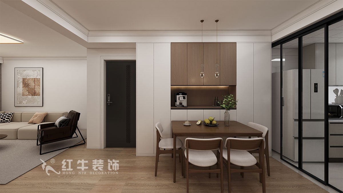 餐廳說明:餐邊柜擴充了廚房儲物的不足,也提升了適合家庭的生活質(zhì)量。