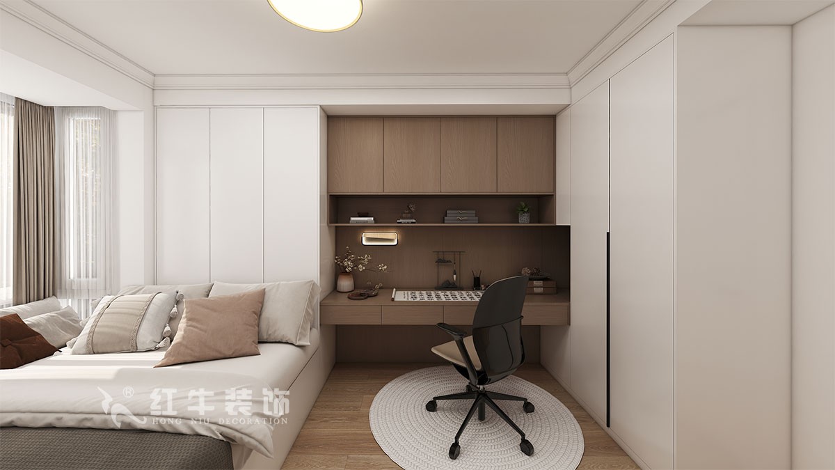 臥室說明:搭配大面積的白色定制衣柜,床頭的光源以不同形勢呈現(xiàn),滿足不同燈光需求,又恰到好處地起到了裝飾效果,使整體臥室空間呈現(xiàn)明亮、溫柔的舒適狀態(tài)。