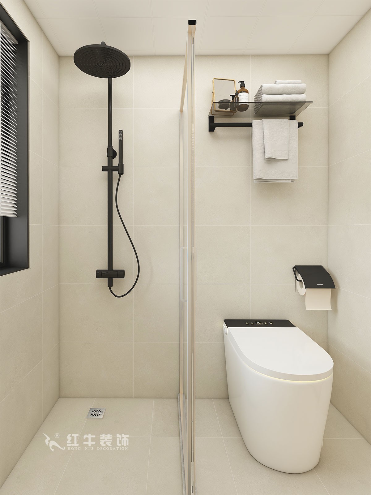 衛(wèi)生間說(shuō)明:整體色彩搭配干凈、大方,選擇大尺寸淺灰色瓷磚上墻,氛圍感溫馨感滿(mǎn)滿(mǎn)。