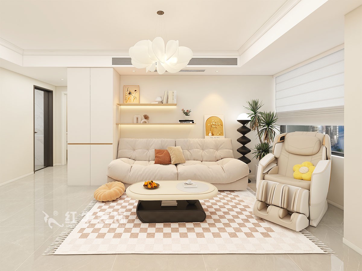 蔣?。辖鹉显?1-1-202-82㎡-簡約奶油風(fēng)格|2室1廳1衛(wèi)|二手房裝修|婚房裝修|定制家|全包11
