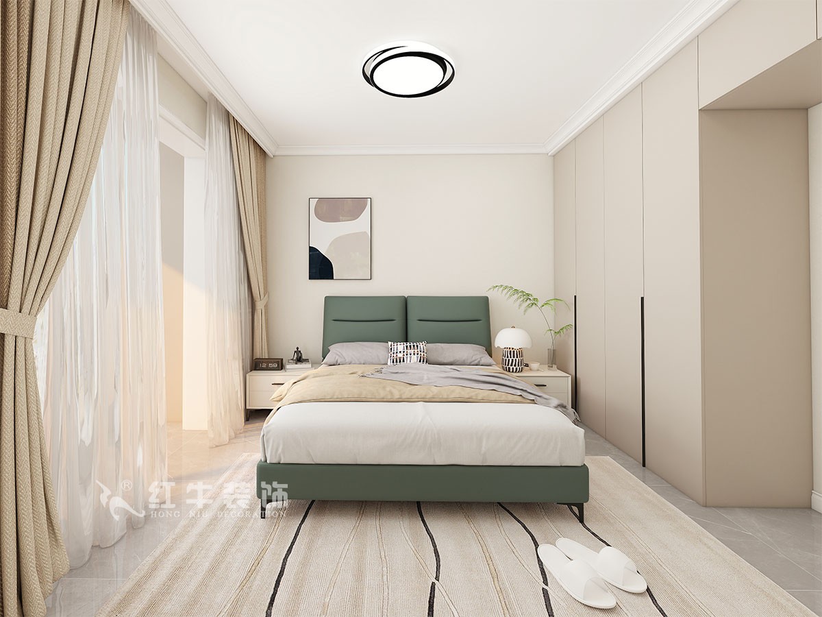 此案主要是改善裝修,在舒適度上要求比較高,臥室是整套房子中最私人也是最體現(xiàn)出溫馨休閑感的空間。在設(shè)計(jì)時(shí)體現(xiàn)出靜謐舒適的感覺,并且與其他空間明顯的區(qū)別。減小廚房面積,打通北房間,變成餐廳,增加了鞋柜空間,有了單獨(dú)的客廳和餐廳空間。