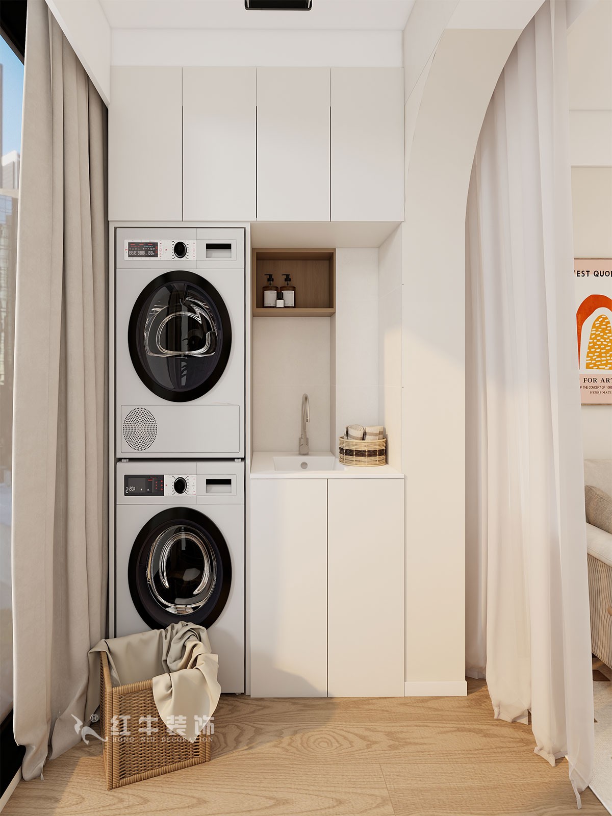 陽(yáng)臺(tái)走主臥,晚上使用洗衣機(jī)影響業(yè)主作息時(shí)間;