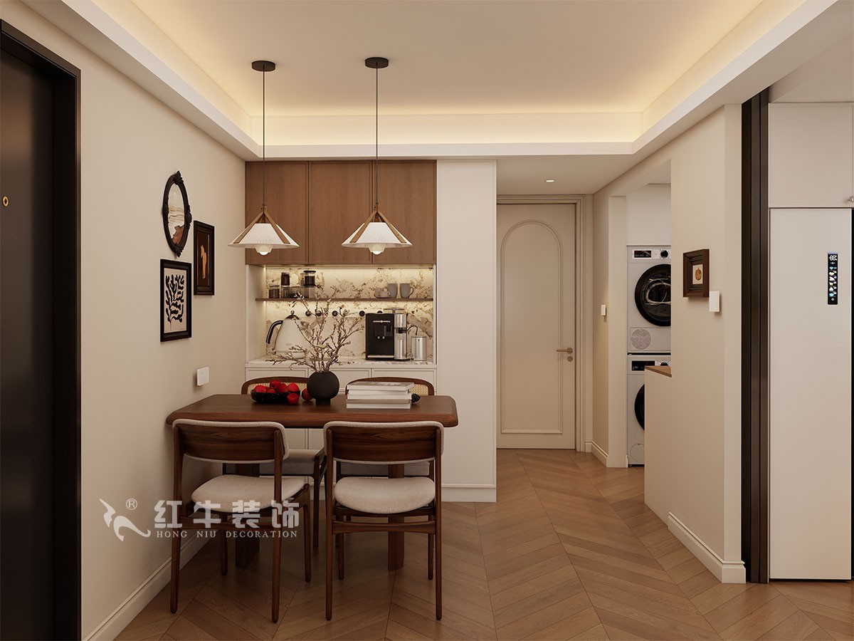 客餐廳空間很規(guī)整,通過細節(jié)的處理打造輕松舒適的中古風居家環(huán)境。