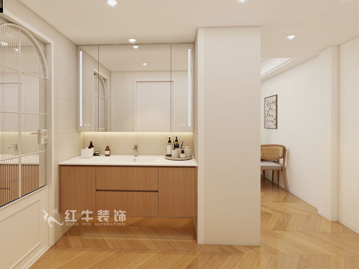 房間3房改一個(gè)衣帽間;衛(wèi)生間干濕分區(qū),進(jìn)行了重組,利用柜子的深度做了一個(gè)對過道的餐邊柜。