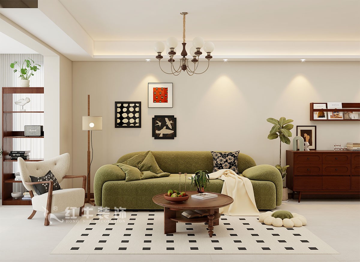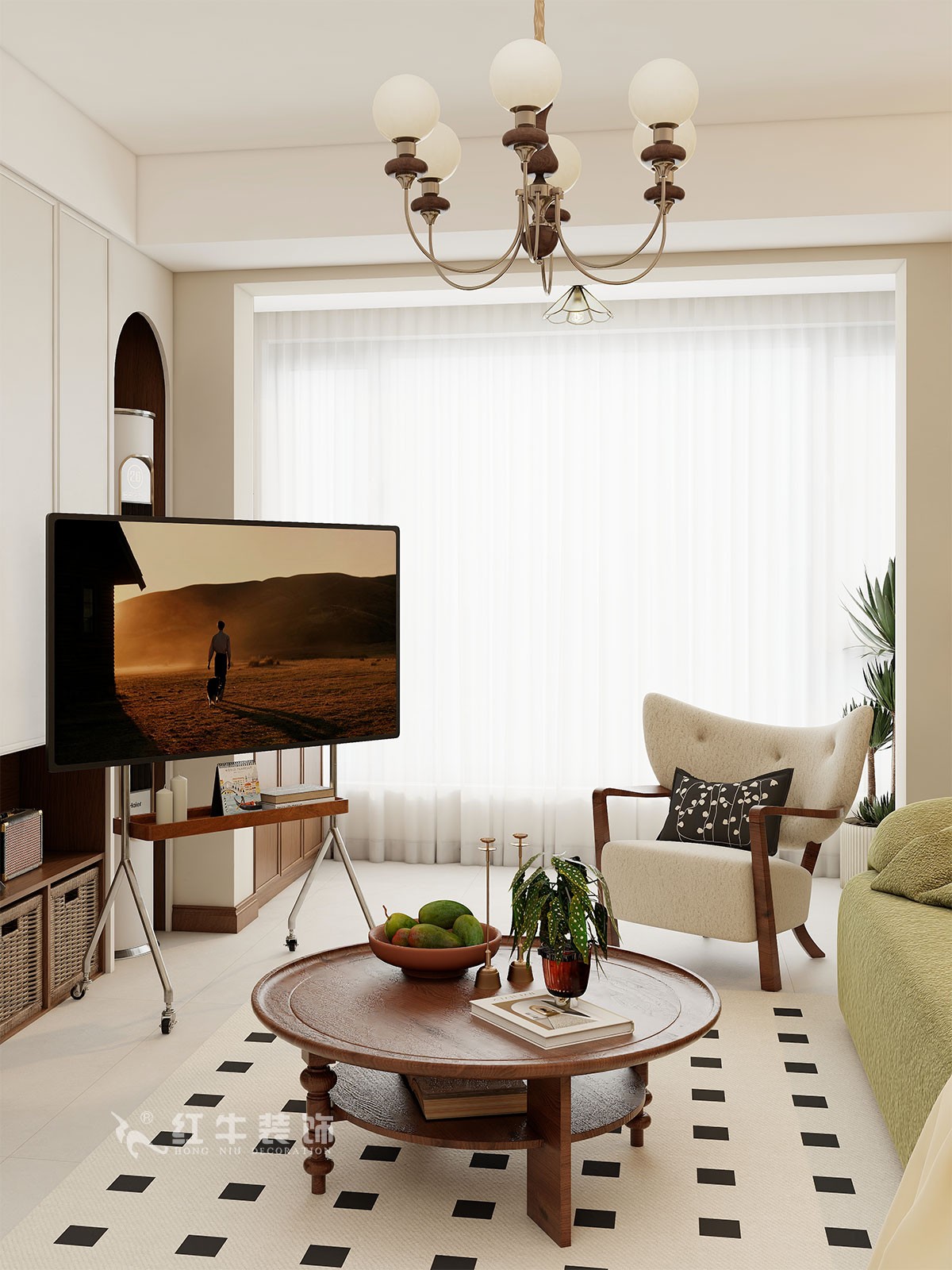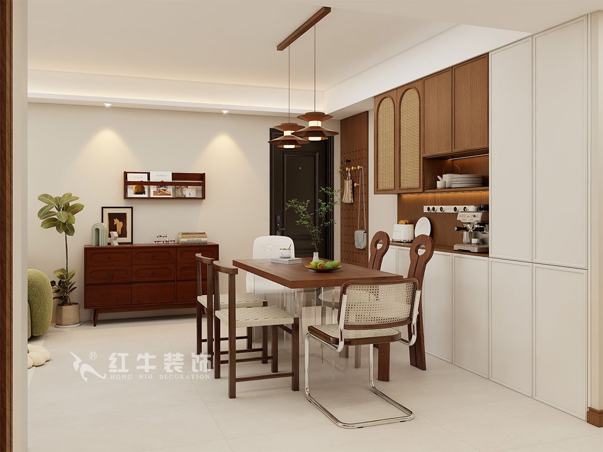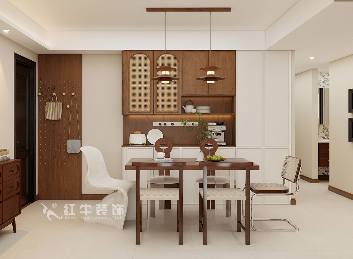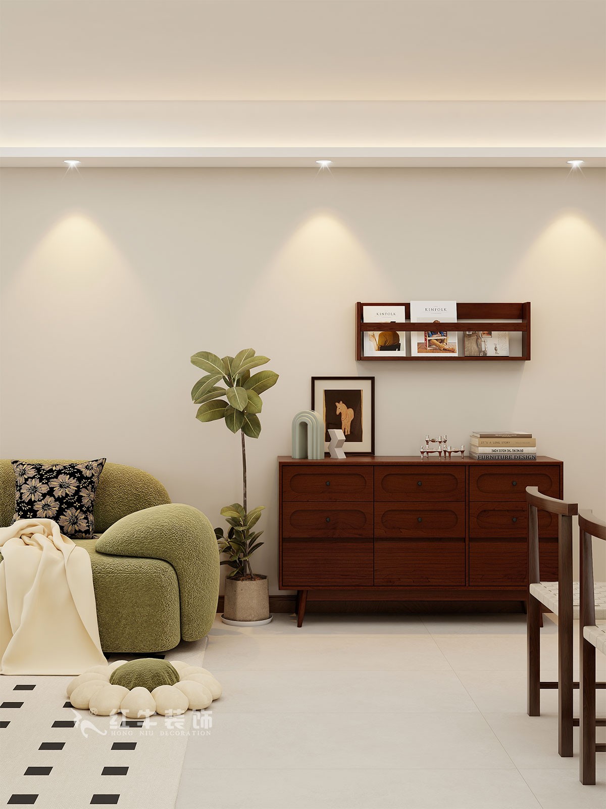 客餐廳空間很規(guī)整,通過細節(jié)的處理打造輕松舒適的中古風居家環(huán)境。