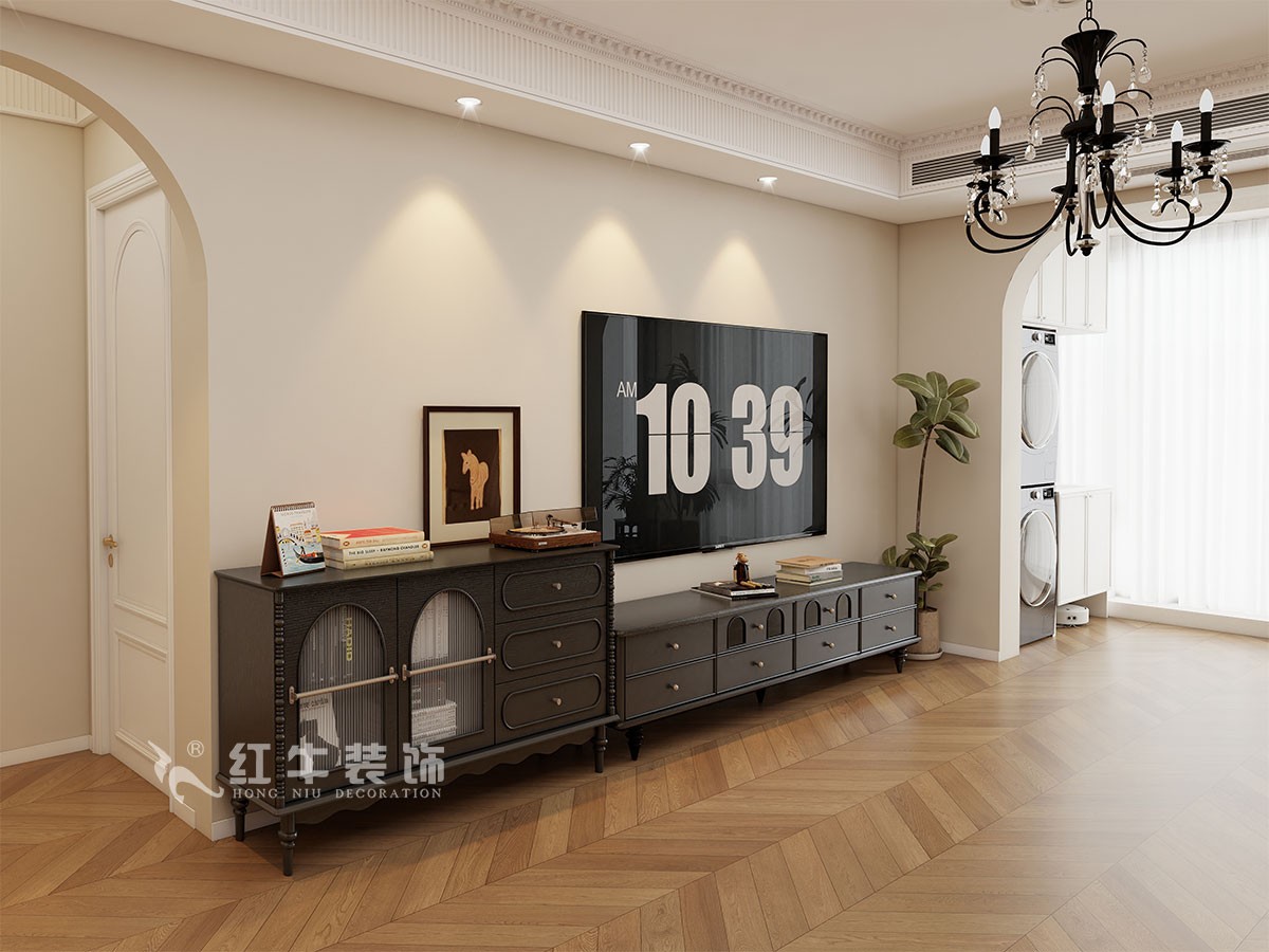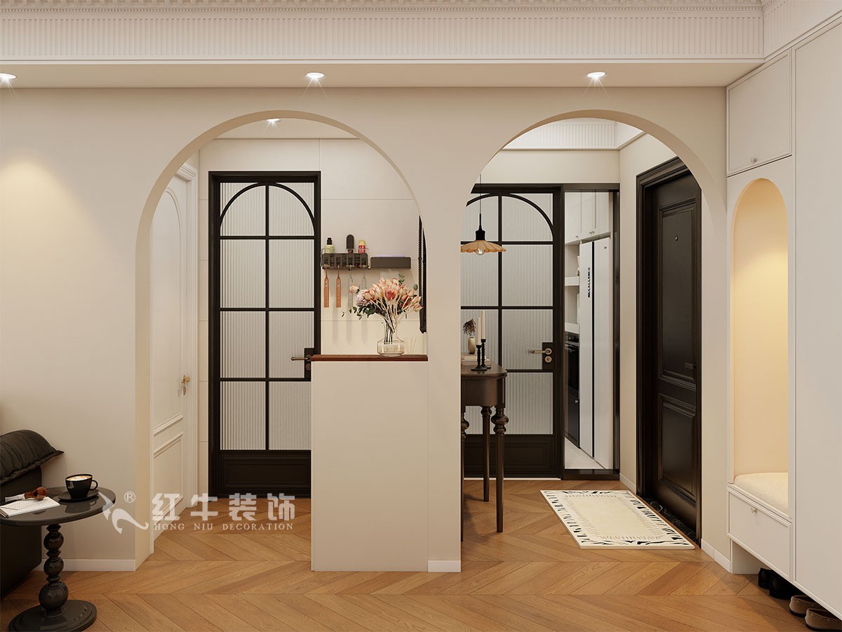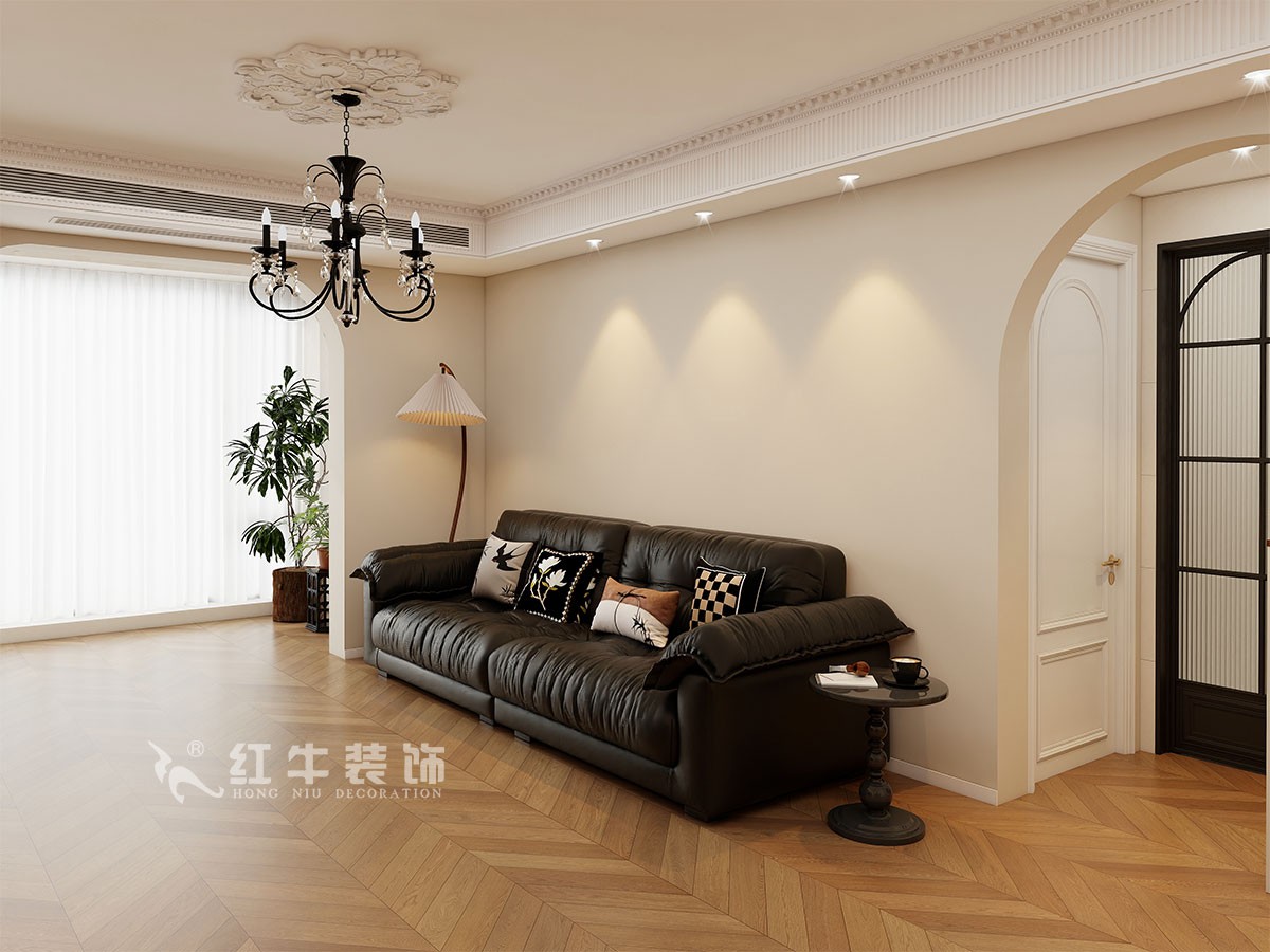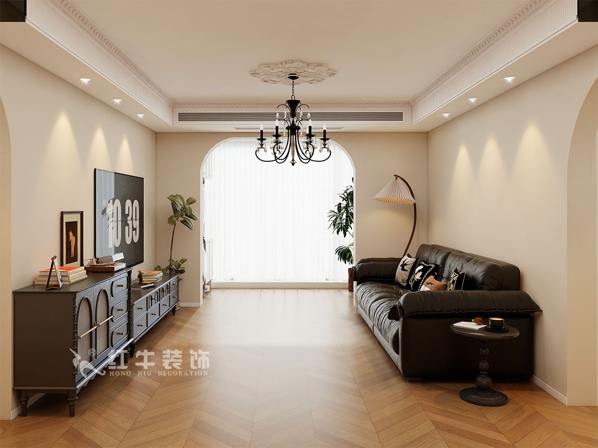 小兩口居住,女業(yè)主對(duì)裝修希望比較時(shí)尚大氣,希望未來(lái)的房子實(shí)用、大氣,最終確定了法式復(fù)古風(fēng),而本案在設(shè)計(jì)時(shí)其特色是將設(shè)計(jì)的元素、色彩、照明、原材料簡(jiǎn)化到最少程度。但是對(duì)材料的舒適度要求很高。因此,考慮全屋通鋪木紋地板磚,配合拱形門(mén),以極少的元素去表達(dá)空間的氛圍感。