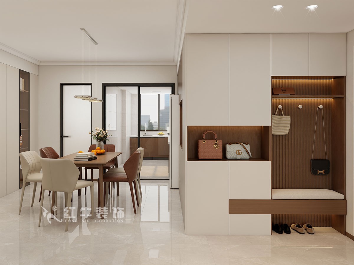 入戶門廳作了穿鞋凳的設(shè)計(jì),鞋柜連接餐邊柜,增加儲(chǔ)物空間的同時(shí)更加簡(jiǎn)約大氣,其余空間不做墻體改造,功能分區(qū)盡可能多做一些儲(chǔ)物柜,不僅滿足了儲(chǔ)物的需求,同時(shí)使得空間更加豐滿、大氣、時(shí)尚。