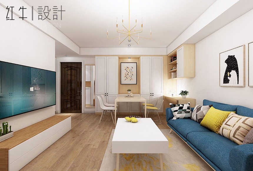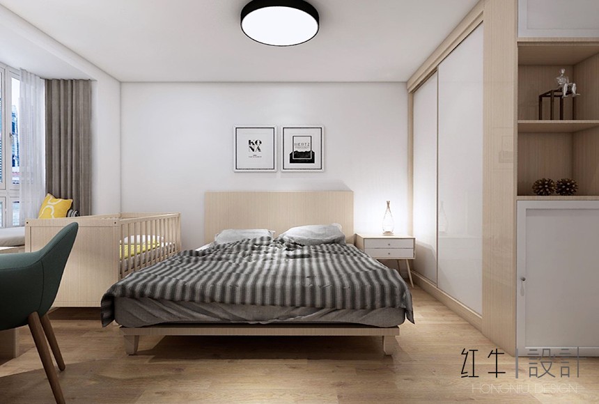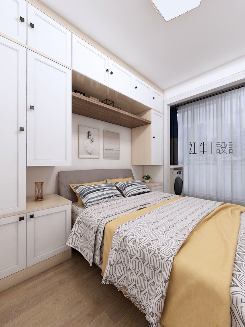 業(yè)主夫妻雙方是強(qiáng)烈的讀書愛好者觀念,對房子的需求必須有兩個(gè)舒服的書桌,但因房子較小,我們在考慮在空間舒適的基礎(chǔ)上,利用了餐廳區(qū)域,形成整體餐邊柜和書桌的結(jié)合體,滿足客戶的功能需求,次臥相對空間較小,放下衣柜后,床和陽臺門的間隙很有限,最終和客戶考慮以床頭邊柜的形式來存在,節(jié)省了房間橫向尺寸,滿足了后期使用的舒適度,整體空間以白色墻面為主,通過軟裝的跳色,家具的白和楓木色的調(diào)和,襯托出客戶想要的“清新”的感覺。