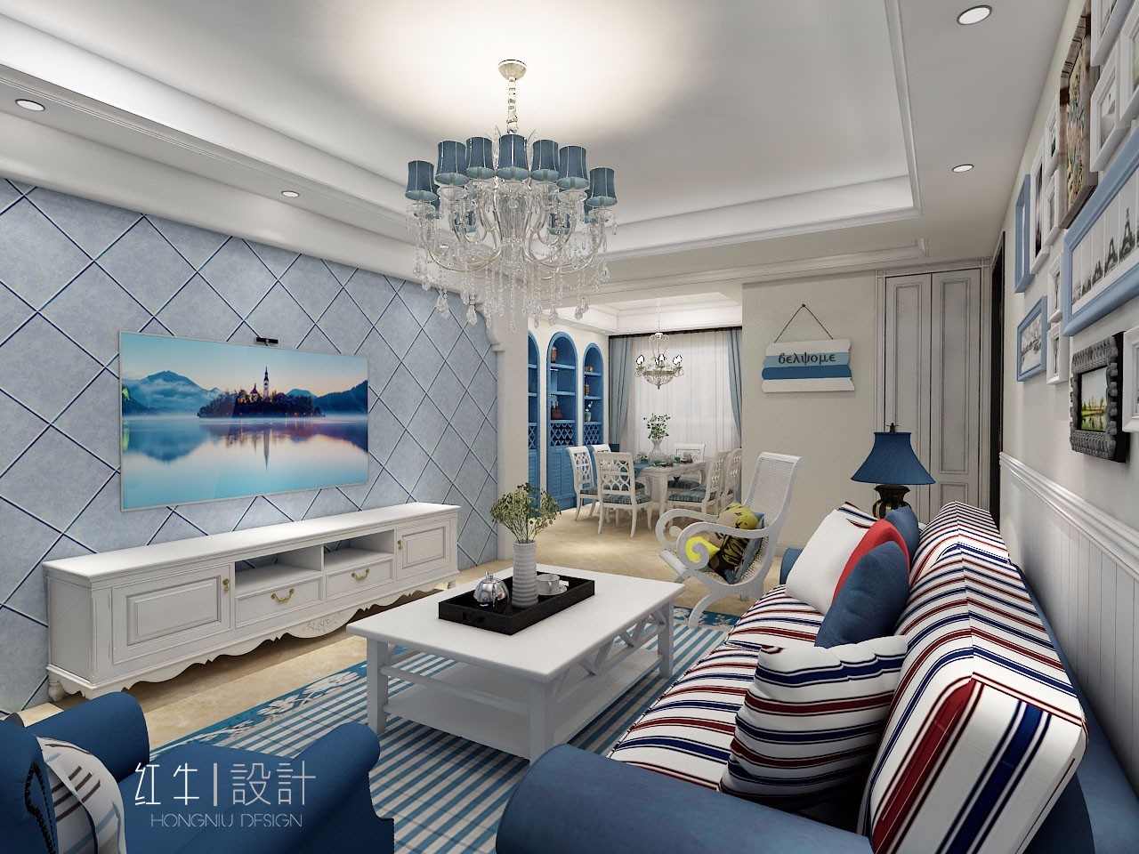 本方案是以地中海風(fēng)格為主,是一家三口居住, 對(duì)于地中海風(fēng)格的設(shè)計(jì)來說,白色和藍(lán)色是兩個(gè)主打,給人一種陽光而自然的感覺。