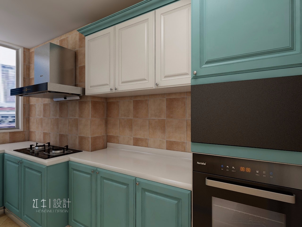 櫥柜柜門的顏色決定了整個(gè)廚房的色調(diào),給燥熱的廚房空間帶來一絲清涼。