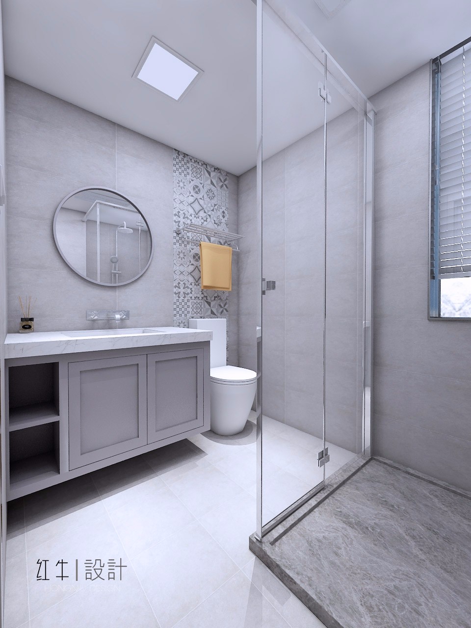 五邊形的角落淋浴房,能夠節(jié)省空間。