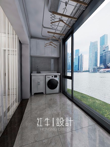 陽臺空間較大,洗衣機放到陽臺了,操作起來更舒心,清洗之后可以直接進行晾曬。