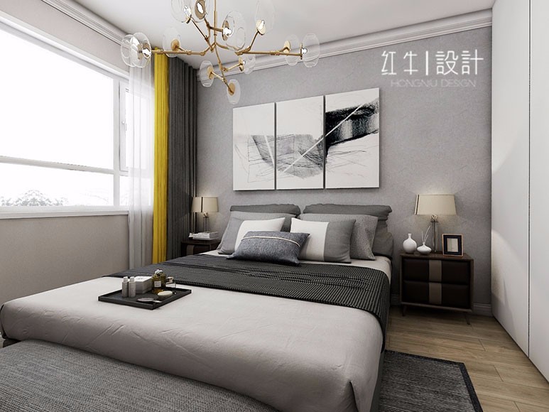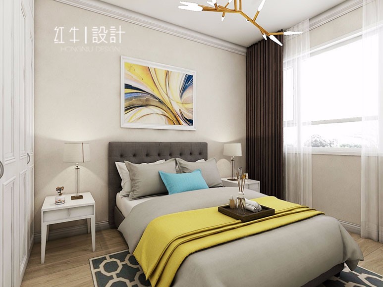 客餐廳色調(diào)清雅,休閑、隨性又不失精致,電視背景墻沒有過多的華麗修飾,給空間本身一個開拓、延展性,給居住者一個慵懶、明快的起居環(huán)境。主臥次臥,依靠家具本身的線條感,搭配同樣風格的裝飾畫,給人以休閑自在的視覺感受。書房是辦公空間,設計者在整面墻留畫,一條小路通向遠方,給了本就不大的空間一個視覺的開放性,心情也自然就舒緩很多。