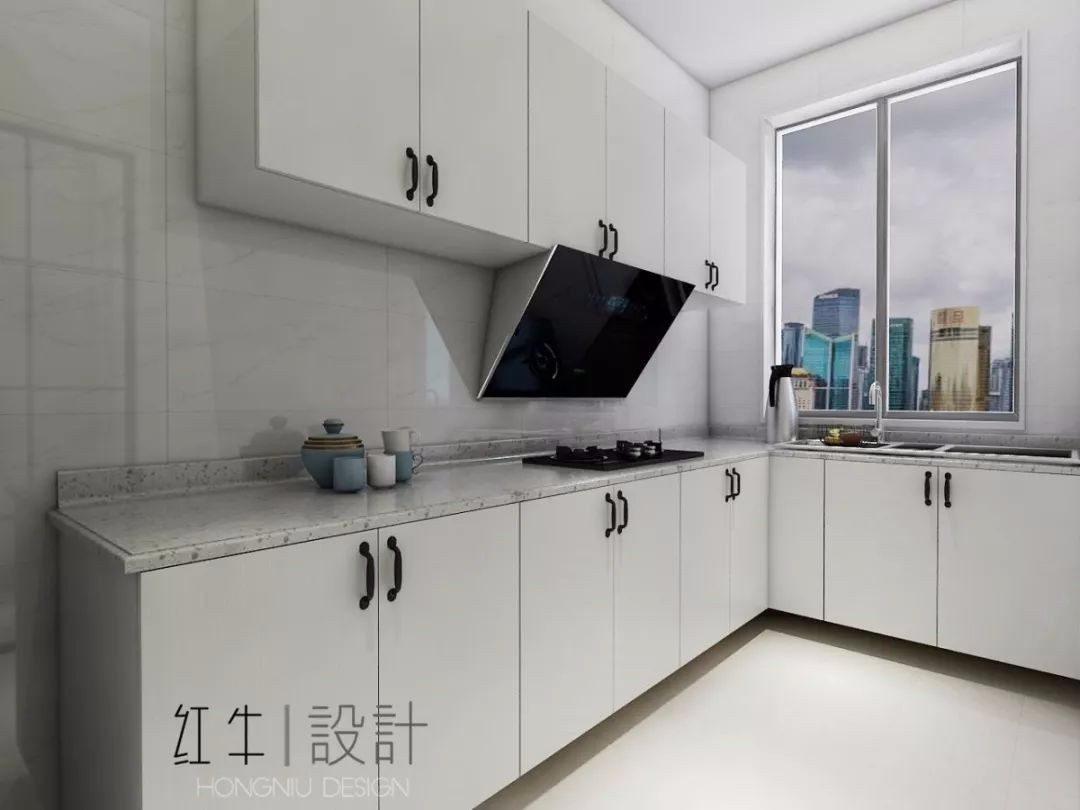 如今,廚房門位置做了了改變,原先走廊區(qū)域中的一部分,被包含在廚房?jī)?nèi),空間上寬敞了許多。