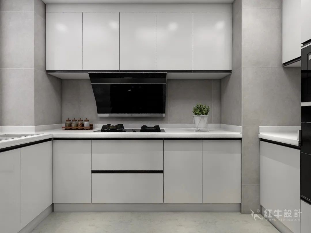 但有一個小缺點,就是廚房較小,喜歡下廚的業(yè)主,可以考慮從其他地方拓展空間。