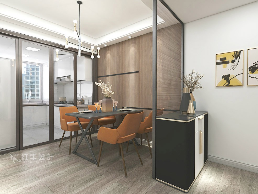本案現(xiàn)代簡(jiǎn)約風(fēng)格,進(jìn)門(mén)玄關(guān)即美觀又起門(mén)廳作用,利用北陽(yáng)臺(tái)空間做出廚房,客廳和餐廳獨(dú)自的空間,簡(jiǎn)約的電視背景和餐廳背景設(shè)計(jì),通過(guò)軟裝色彩的搭配,讓空間更加溫馨。