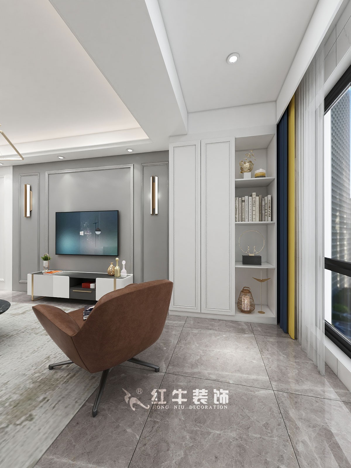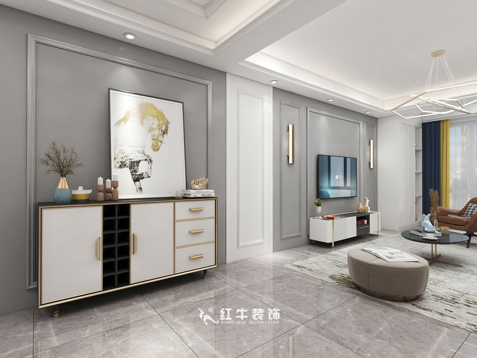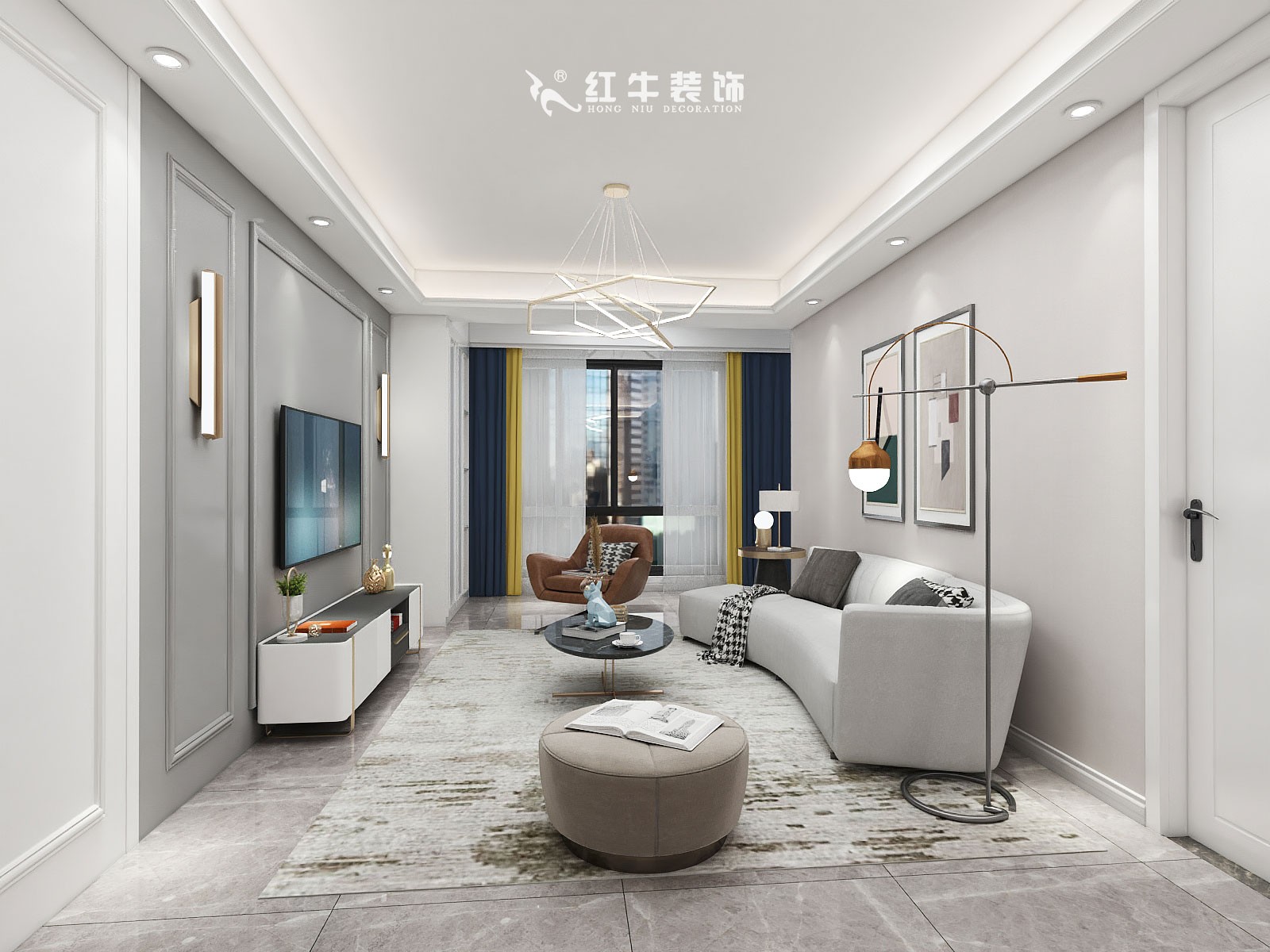 顧娟_金地都會意境118㎡現(xiàn)代風格--弧形沙發(fā)設(shè)計,獨特有創(chuàng)意!04客廳設(shè)計_電視背景墻