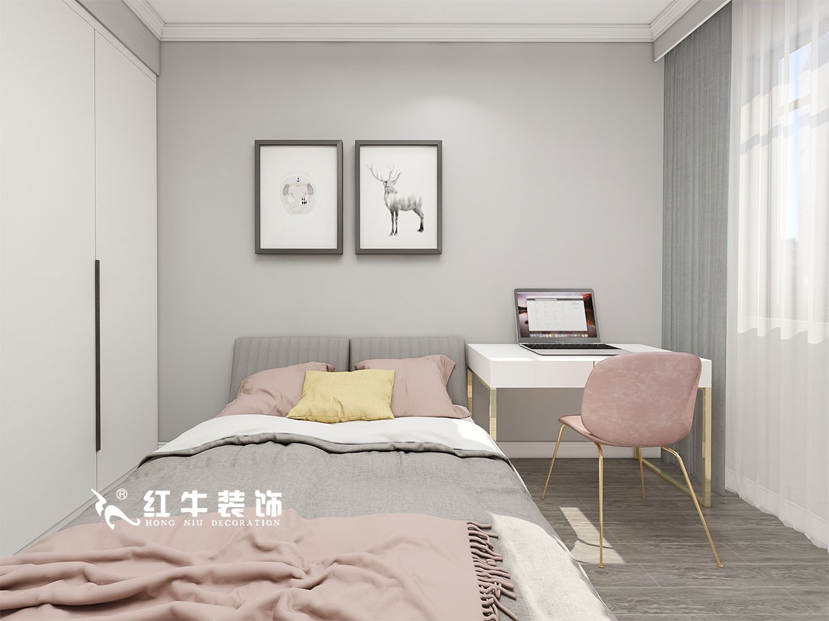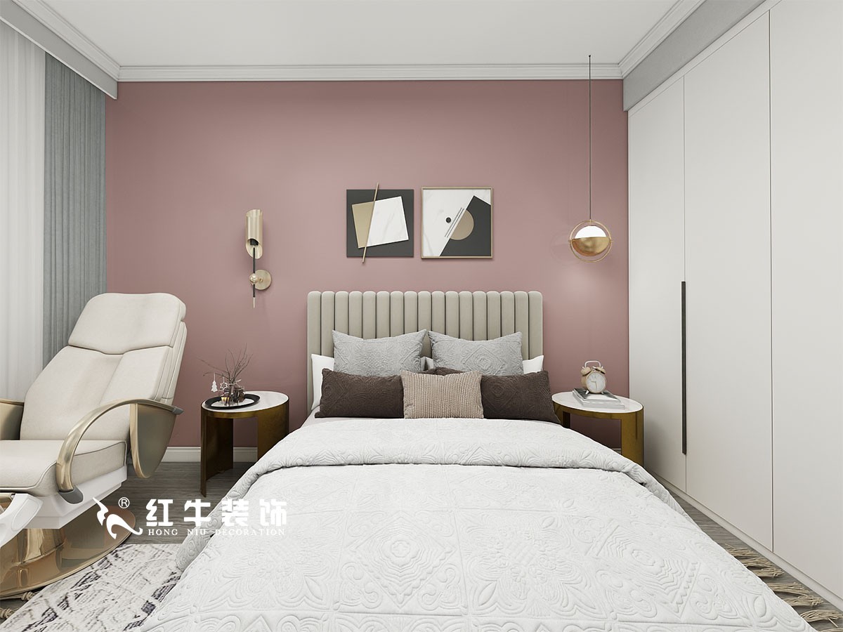背景墻選擇了不落俗套的粉色系,結(jié)合紗簾看起來更有夢(mèng)幻感。床頭的設(shè)計(jì)起到了中和的作用,不會(huì)讓粉色看起來太過甜膩,像是燈具、裝飾畫的選擇就營(yíng)造出細(xì)節(jié)的精致感,展現(xiàn)出輕奢氣質(zhì)。