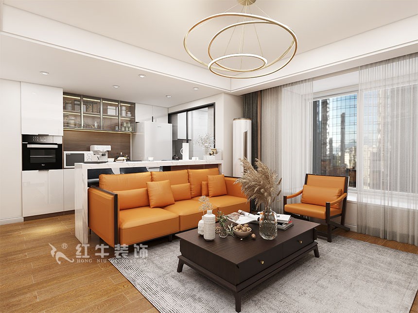 沙發(fā)不要靠墻,這樣設(shè)計(jì)才夠別致?。櫨阓東城水岸115㎡現(xiàn)代風(fēng)格_3室2廳1衛(wèi)_舊房裝修_全包17萬(wàn))02
