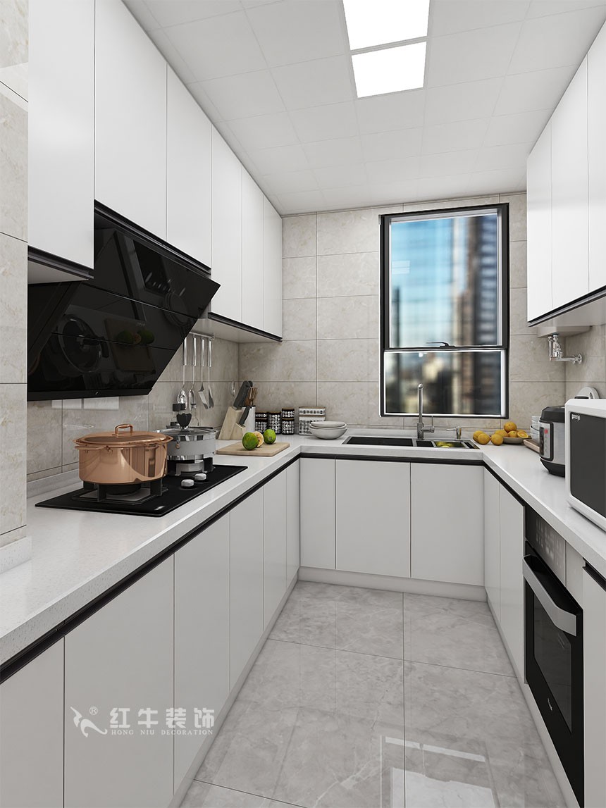 房子就是比較常規(guī)的四房兩廳的戶型,客戶家里兩個孩子,需要很多的收納空間,同時四個房間都要保留,所以在客廳空間,把整個背景墻加了一組整體柜子。廚房也整體擴出來了,增加了臺面空間。