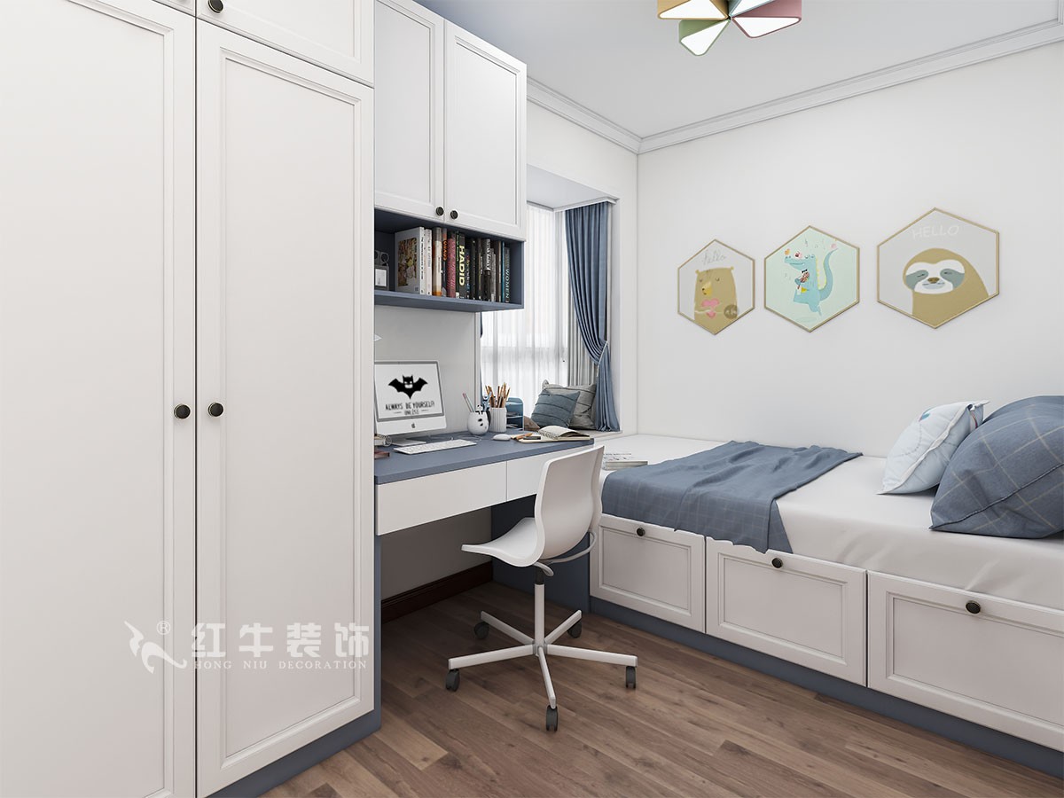 客餐廳色調(diào)統(tǒng)一又不失精致,依靠現(xiàn)代中式風(fēng)格家具本身的線條感,搭配同樣風(fēng)格的裝飾畫,給人以休閑自在的視覺感受。兒童房臨窗處書桌加衣柜來做處理,搭配榻榻米設(shè)計,給了本就不大的空間一個視覺的開放性,心情也自然就舒緩很多。