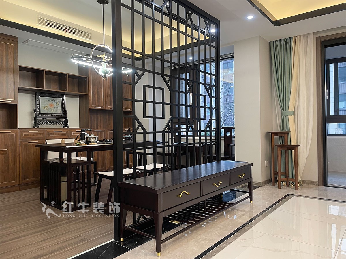 新中式風(fēng)格非常講究空間的層次感,空間裝飾多采用簡潔硬朗的直線條,直線裝飾在空間中的使用,不僅反映出現(xiàn)代人追求簡單生活的居住要求,更迎合了中式家具追求的內(nèi)斂、質(zhì)樸的設(shè)計風(fēng)格,使新中式更加實用、更富現(xiàn)代感。