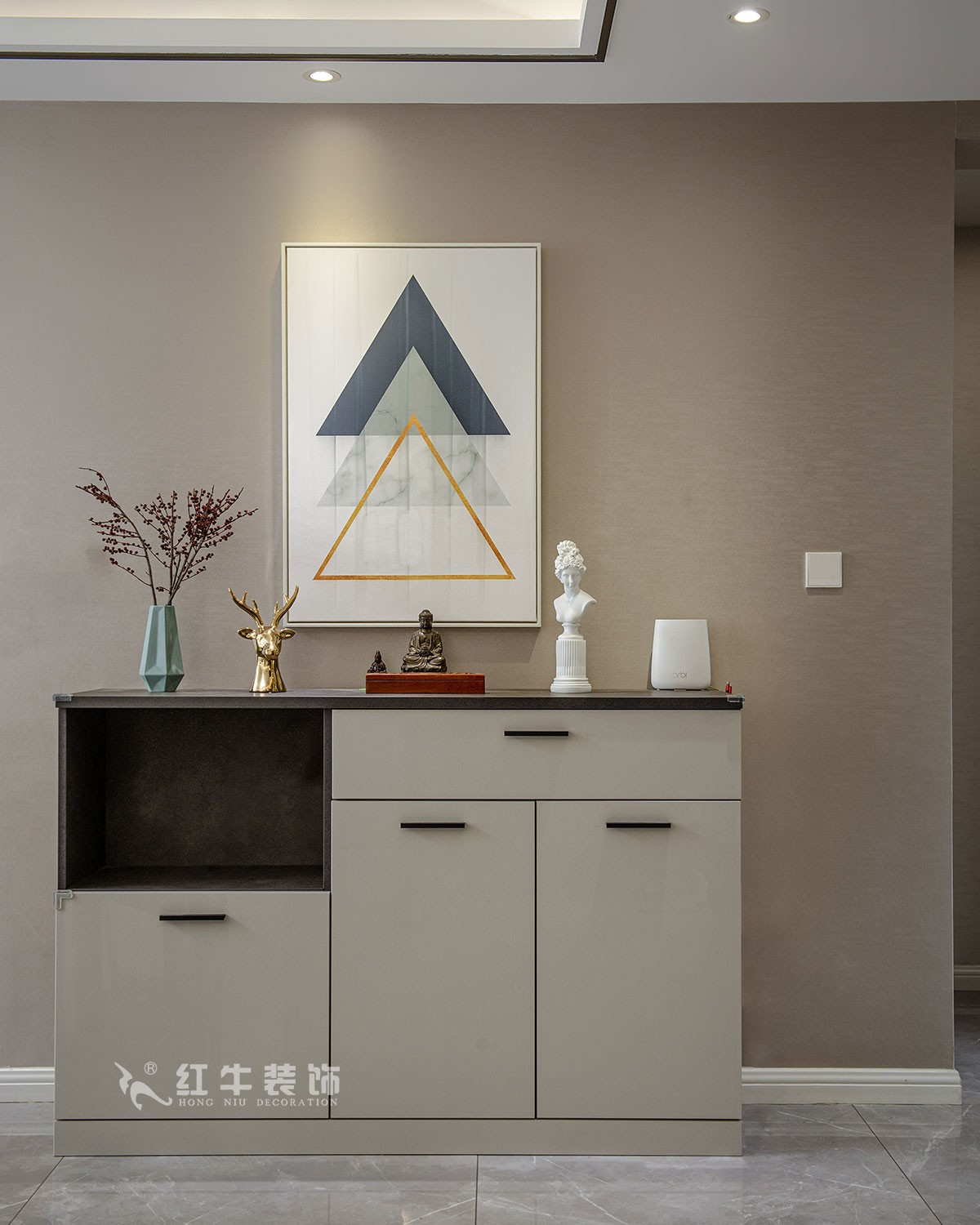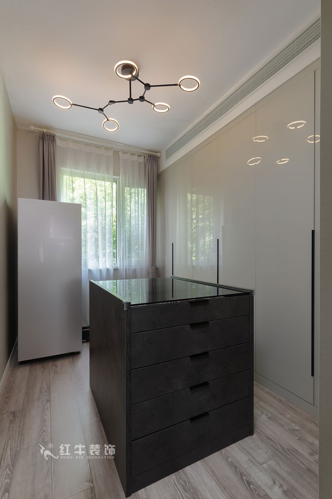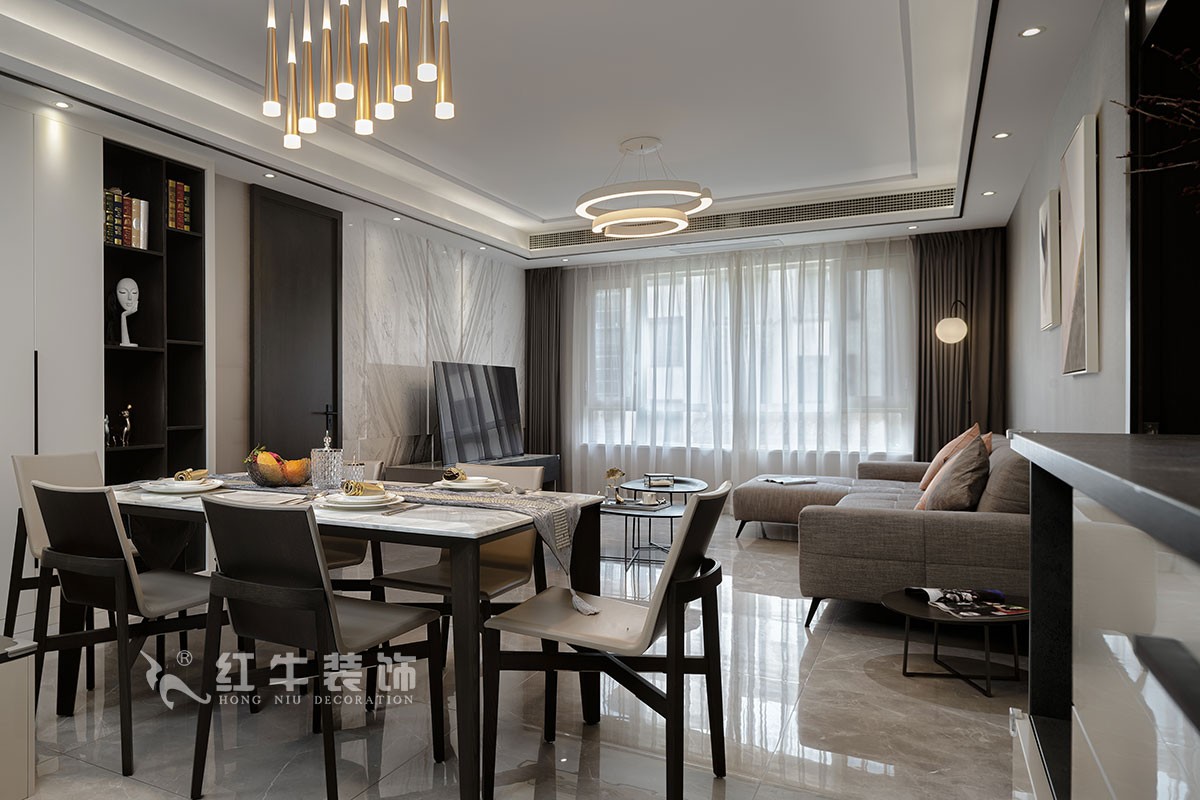 古語(yǔ)云:小隱于林,大隱于市。生活里蘊(yùn)藏著的大智慧不是一定要置身山林泉澗中才能體會(huì),而是立于都市繁華亦能擁有一方心靈凈土,刪繁就簡(jiǎn),修身養(yǎng)性,心物相應(yīng),居者與居室應(yīng)相融一體。色系上,本案以澄凈無瑕的白為主,輔以木質(zhì)的灰和少量的剛性黑,打造出通透靈動(dòng)卻不失力量的氣場(chǎng)。搭配上,講究去冗存真,給人洗盡鉛華的輕松感和舒適感。