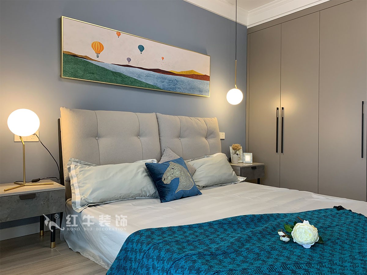 主臥室簡單顯主人家的生活細(xì)致,閱讀燈的點(diǎn)綴更添氛圍,整體的風(fēng)格及色彩的運(yùn)用都是使空間更顯舒適輕松安靜的氛圍,放松、愉悅。