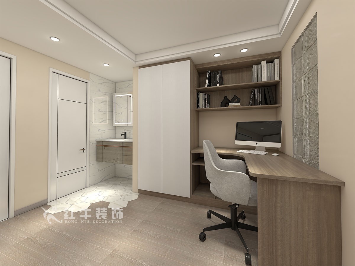 本案設計在跟客戶溝通后,把一樓的衛(wèi)生間拆掉,和進門的廚房空間做成一個整體的空間,視覺和操作空間都變大很多。整體風格是溫馨一點的現代風格,家里做無主燈的設計,現代簡約。二樓衛(wèi)生間做成了干濕分開,干區(qū)地面采用6角型磚和地板無縫拼接。樓梯間上來是書房區(qū)域,這個地方本上在房屋的中間,沒有光線,把主臥室中間隔墻中間做了一個玻璃磚墻的造型,透光又有變化。