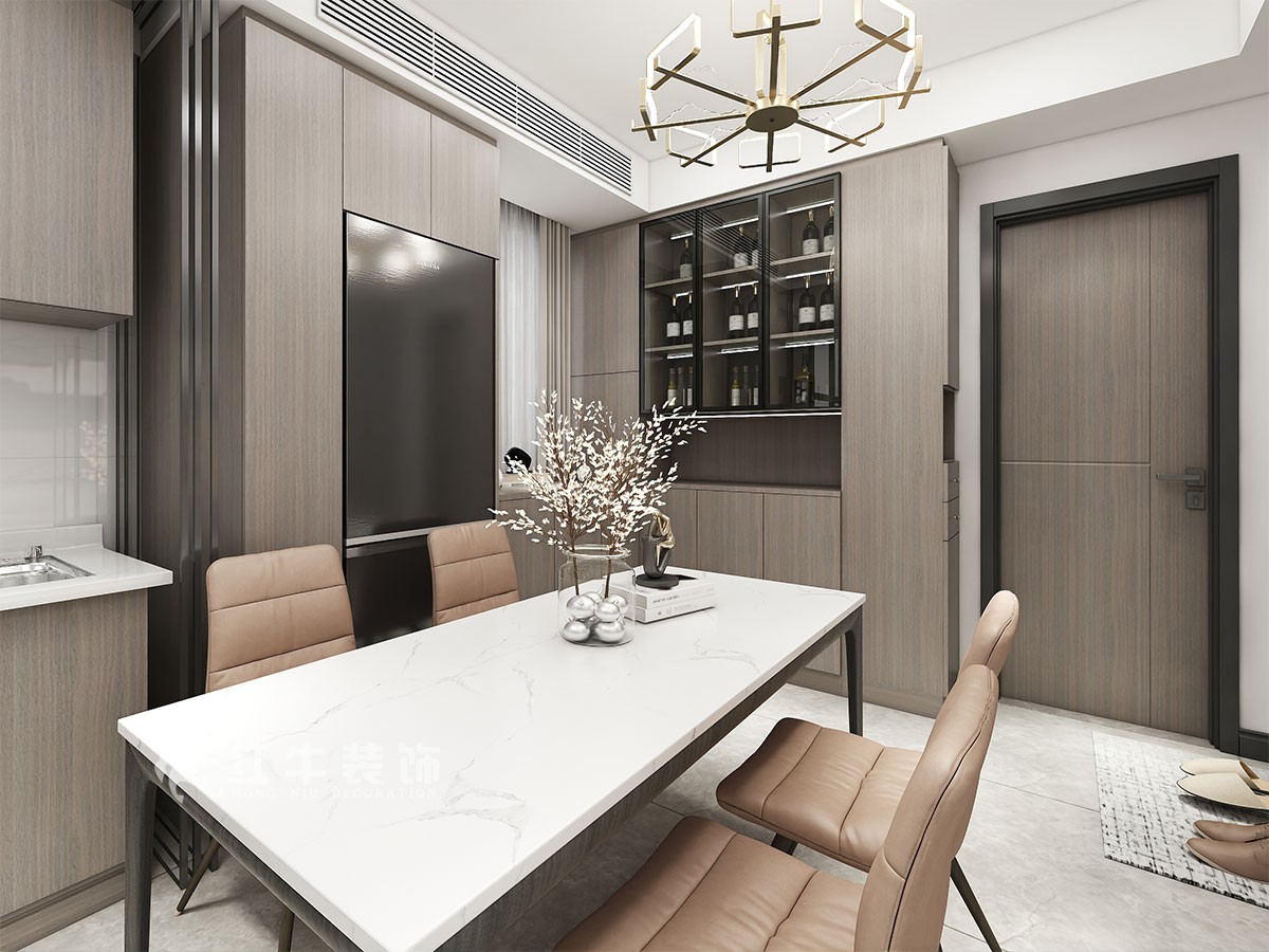 在功能方面,廚房和餐廳融為一體是主人品味的象征,體現(xiàn)了主人品格,地位,既簡單又大方,餐廳的燈光很重要既不能太強又不能太弱,燈光則以溫馨和暖的黃色為基調(diào)。在餐邊做了一組裝飾柜,可以擺放一些飾品,可以增加以下餐廳的情調(diào)。