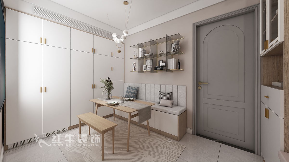 入戶門廳增加鞋柜,增加入戶儲藏客廳的搭配以定制的原木收納柜為主,格局之內都采用天然木質家具,最柔和的顏色,最真實的紋理,搭配球形吊燈,打造出舒適優(yōu)雅的就餐環(huán)境。當奶油色的純凈與灰色的安逸相遇,空間迸發(fā)出柔和溫暖的氣息,恰到好處的構建出治愈,舒適的家居氛圍。