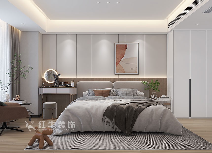 房子是父母給孩子準備的婚房,風格定義為現(xiàn)代輕奢,在平面功能的規(guī)劃中,要求四個房間全部保留,房間原始的尺寸都不是很大,好在所有的飄窗全部可以打掉,充分利用空調(diào)外機的位置把臥室打開,增加舒適性。