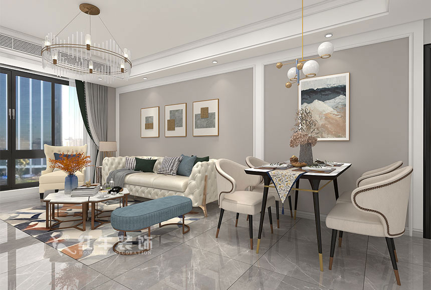 南京鼓樓區(qū)世茂外灘135平米美式風(fēng)格裝修 -