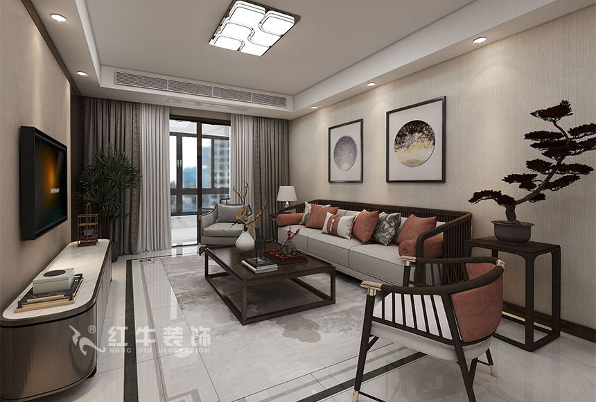 南京雨花臺區(qū)宏圖上水園121平新中式風格裝修 -